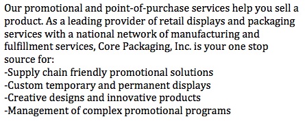 ©2007. Core Packaging, Inc. All Rights Reserved.